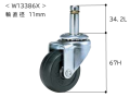 20型・21型用のゴムキャスターです。 ゴムキャスターはPタイルなどの硬い床に適しています。 同じ外観で軸の長さが短いタイプのキャスターがありますのでご注意ください。 こちらは差込軸が34.2Lの長いタイプのキャスターです。 軸の直径は11Φmmです。 ※ご購入の前に現在お使いのキャスターの軸の長さを測ってご確認ください。 ※キャスターの交換は5個同時に交換されることをお勧めします。 取り外し・取り付けの要領は こちらをご参照ください。